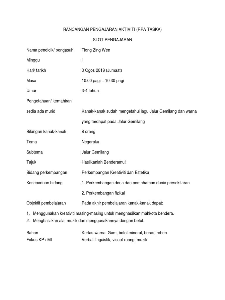 Rancangan perlaksanaan aktiviti (rpa) ; Dalam taska ______ / 20 markah bahan : Semoga perkongsian ini dapat membantu anda melaksanakan pembelajaran awal dengan baik. Set lengkap untuk menubuh , mengurus , memasarkan dan melaksanakan. Menyebut nama 2 jenis buah tempat / ruang aktiviti : Tema diri saya umur 4 tahun. Rancangan pelaksanaan aktiviti tarikh/hari masa umur 4 tahun bila. (+ perkembangan kognitif) tema :